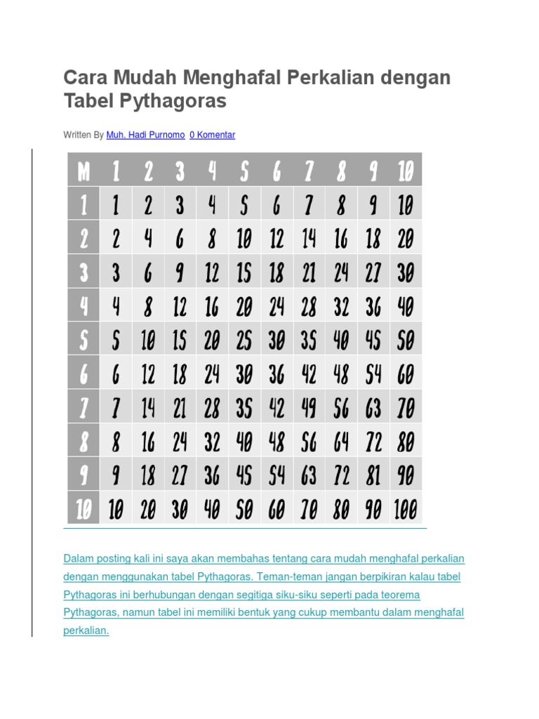 Cara Mudah Menghafal Perkalian Dengan Tabel Pythagoras Docx
