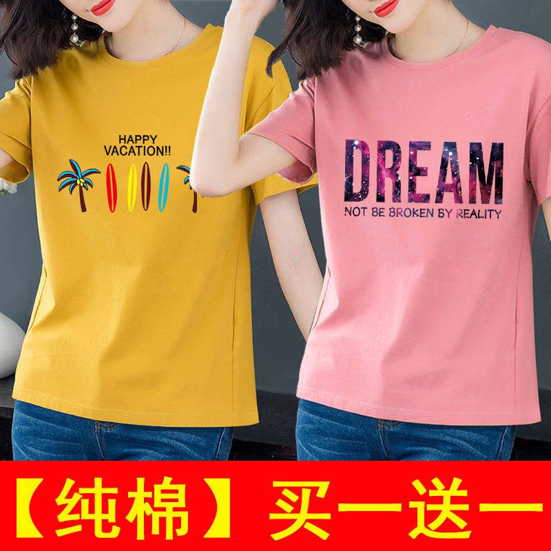 Baju T Shirt Perempuan T Shirt Lengan Pendek Katun Tulen Wanita 2020 Wanita Musim Panas Wanita Korea Musim Panas Baru Longgar Ukuran Kemeja Bercetak Warna Pepejal Shopee Malaysia