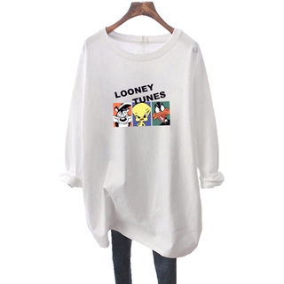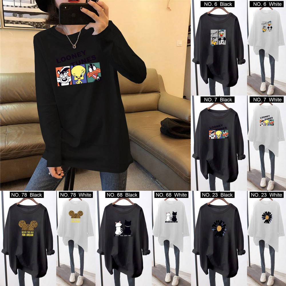 Baju T Shirt Perempuan Cotton Blouse Long Sleeve M 3xl Cartoon Printed Big Size Loose Oversized White Black Basic Blouse Long Women Top Blouse Baju Tshirt Viral Plus Size T Shirt Shopee