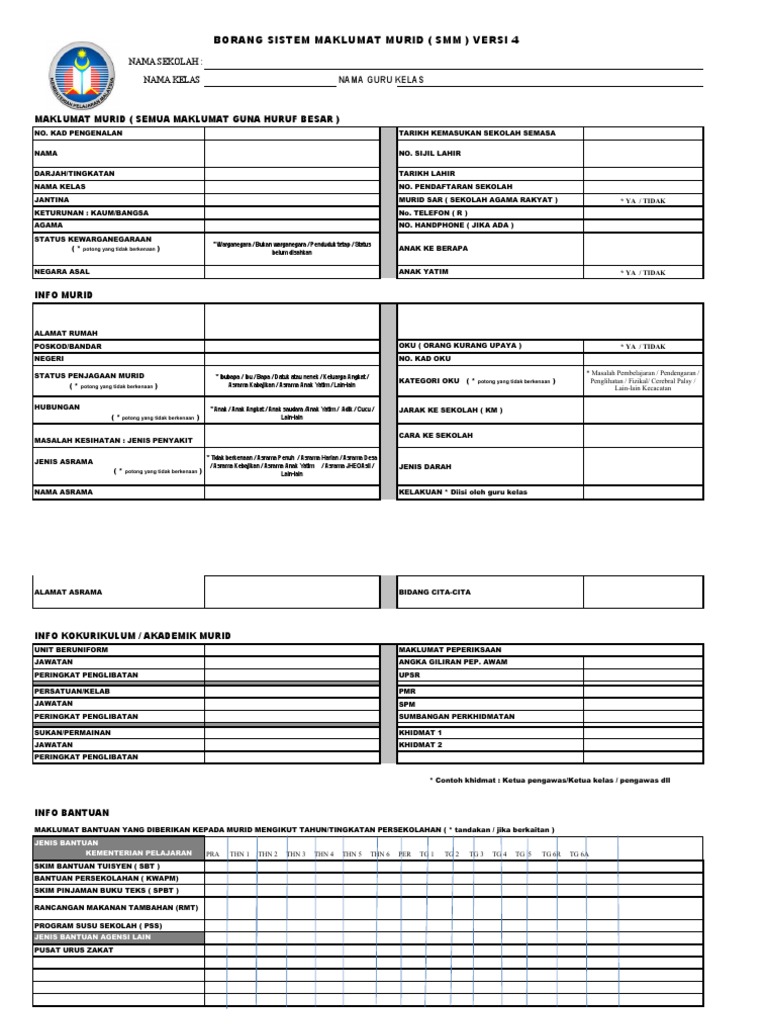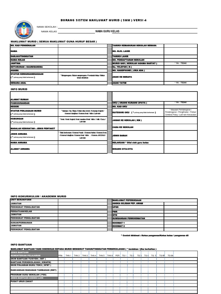 Borang Sistem Maklumat Murid Smm Versi 4
