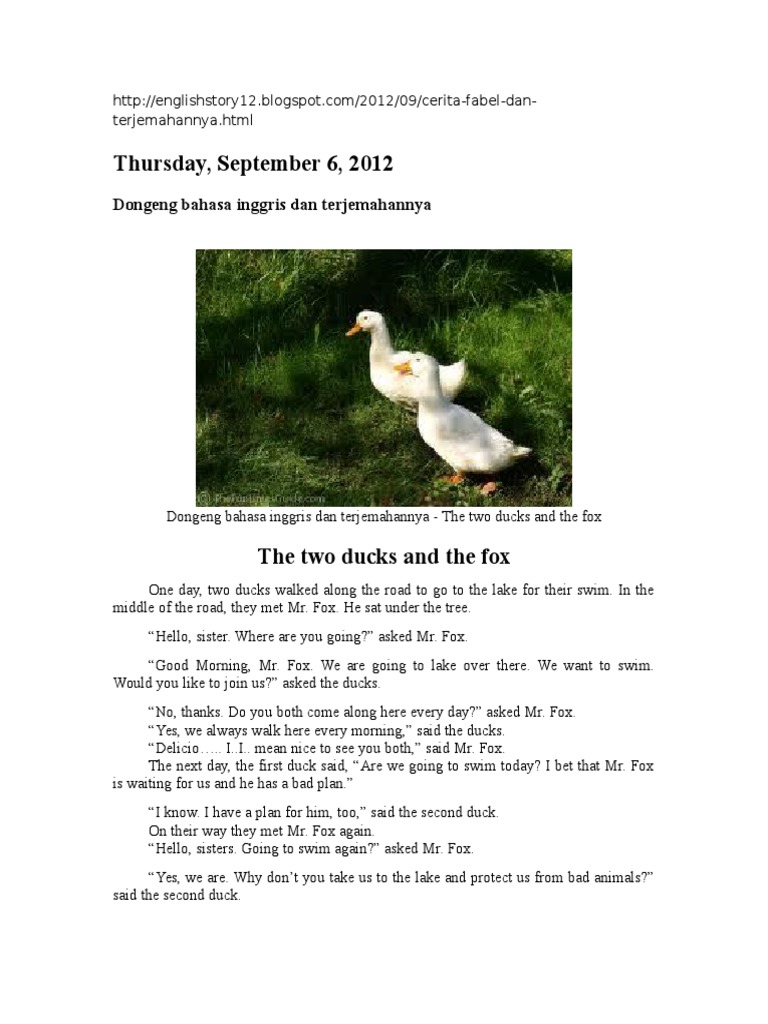 Dongeng Bahasa Inggris Dan Terjemahannya Indonesian Language Classroom