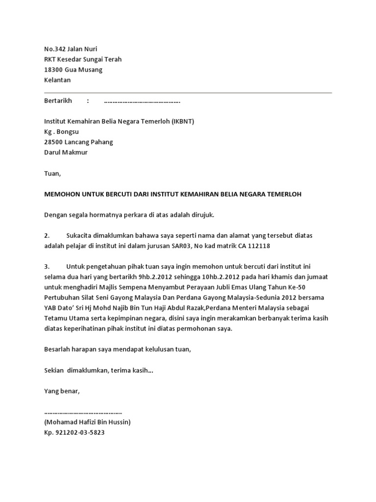 Format Surat Rasmi Cuti Kerja Lebih Format Surat Rasmi Cuti Kerja In English Format Surat Rasmi Permohonan Cuti Format Surat Ra Surat Format Personalized Items