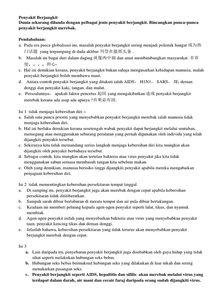 Langkah Mengatasi Penyakit Berjangkit Karangan Stpm