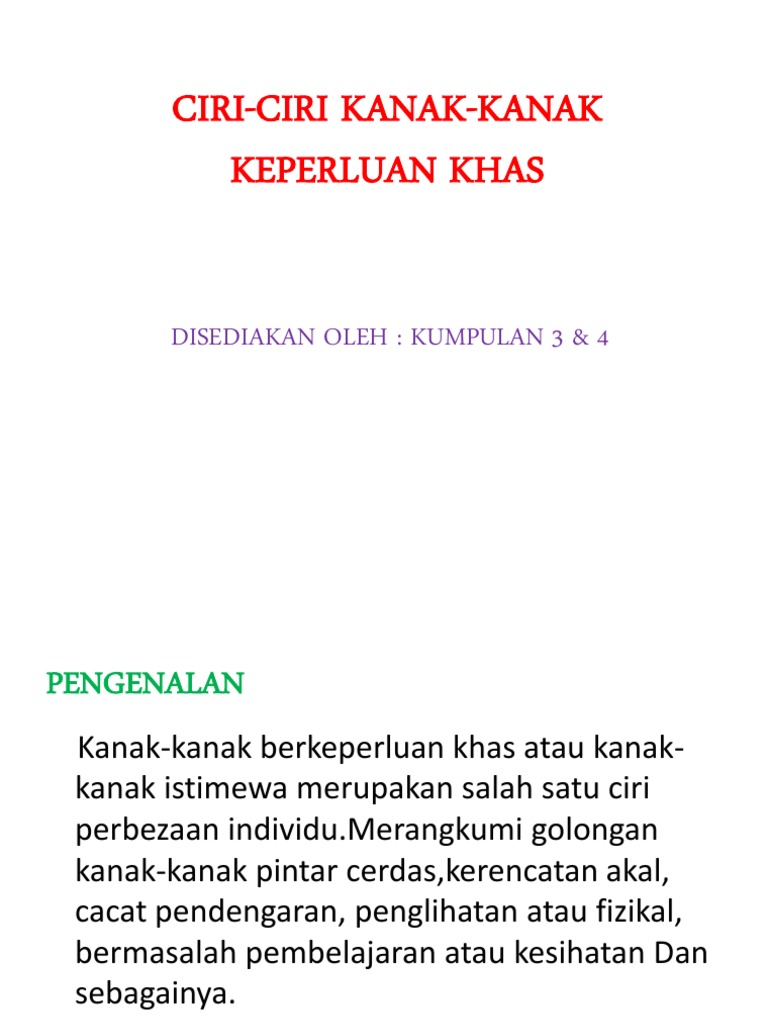 Ciri Kanak Kanak Bekeperluan Khas
