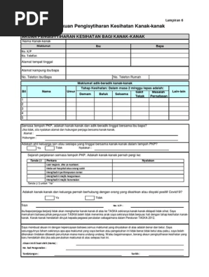 L6 Borang Pengisytiharan Kesihatan Kanak Kanak Taska