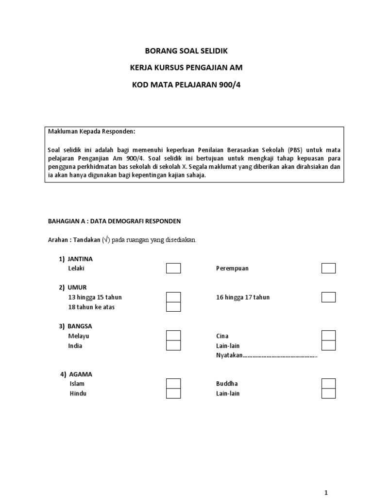 Contoh Borang Kaji Selidik Kerja Kursus Pengajian Am Penggal 2 Stpm
