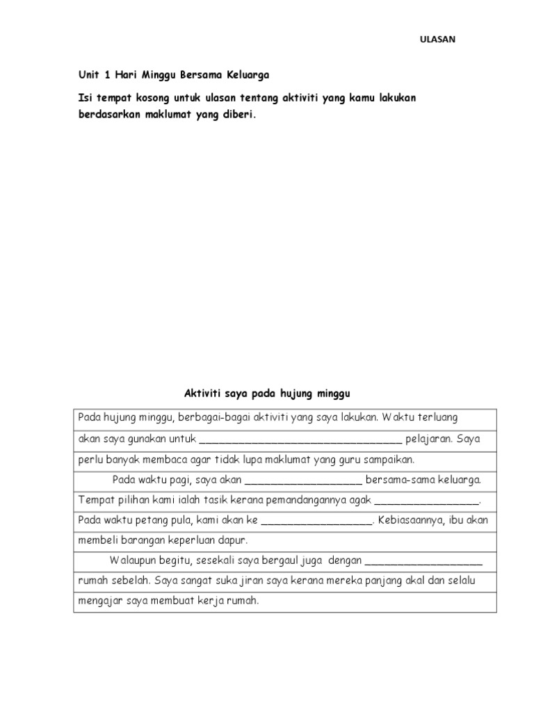 Unit 1 Ulasan Aktiviti Saya Pada Hujung Minggu Doc