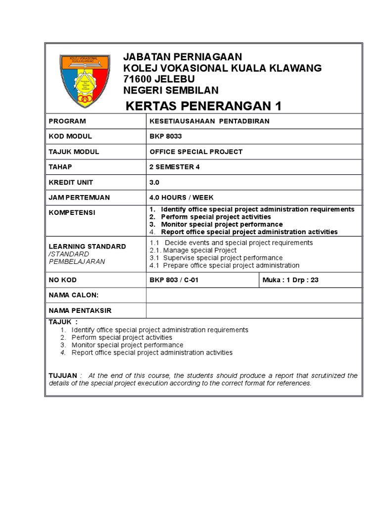 Contoh Projek Tahun Akhir Kolej Vokasional Kesetiausahaan Pentadbiran