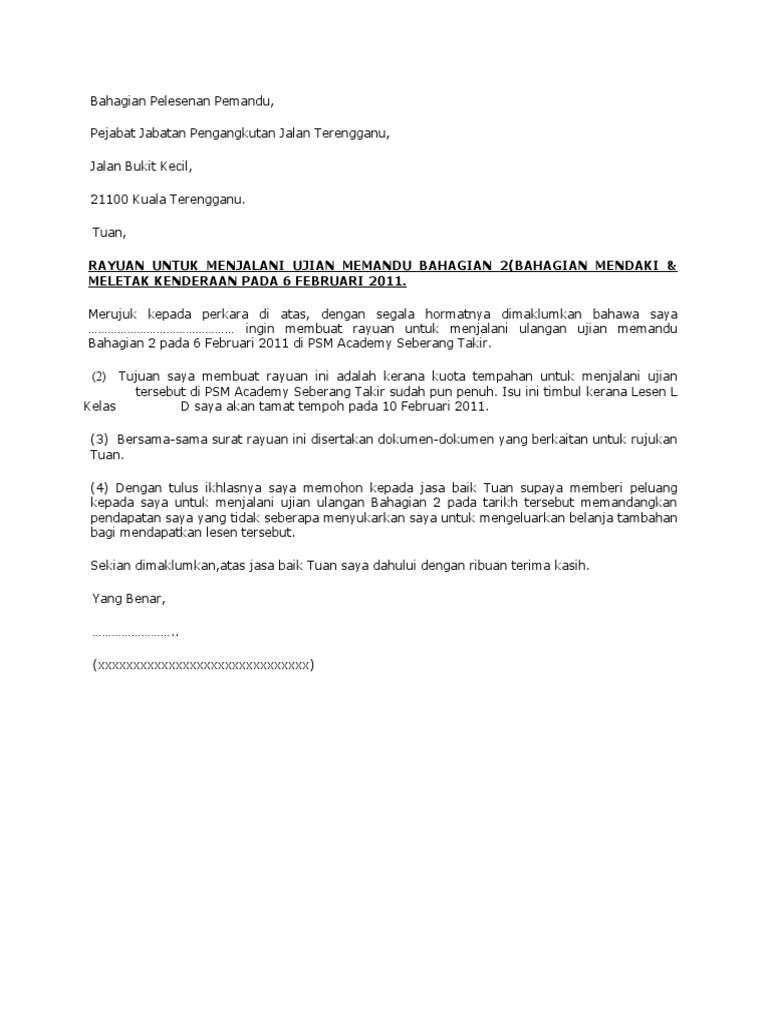 Contoh Surat Rayuan Lesen Memandu Tamat Tempoh
