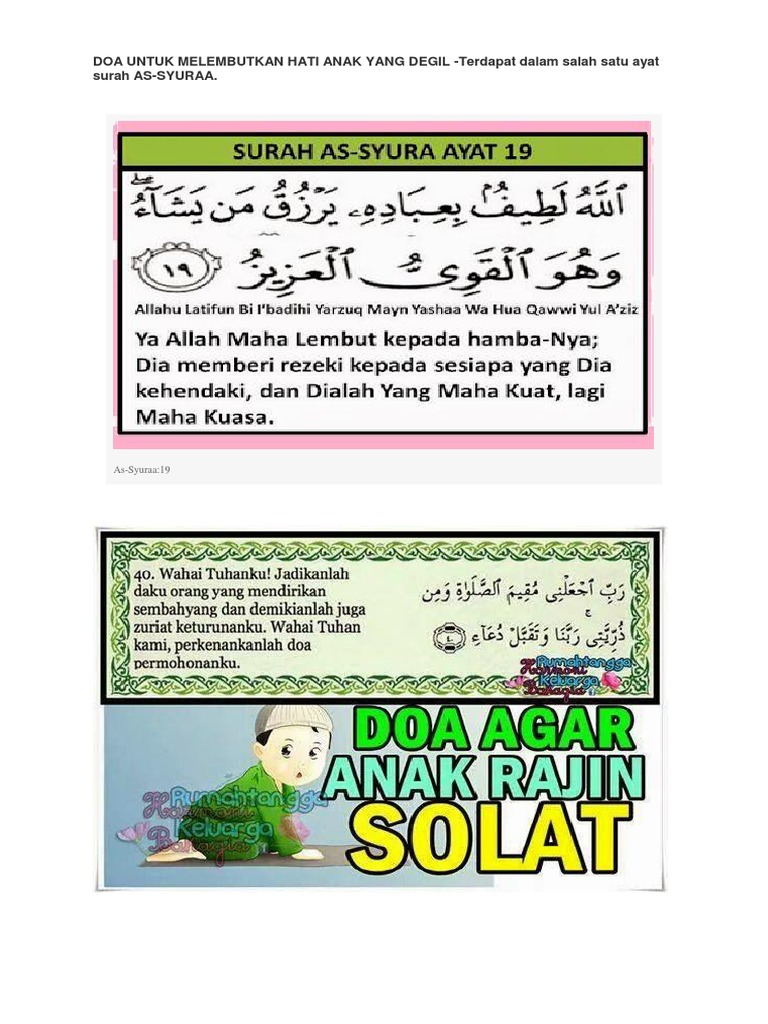 Doa Untuk Melembutkan Hati Anak Yang Degil Terdapat Dalam Salah Satu Ayat Surah As Syuraa Informasi Media Terkini