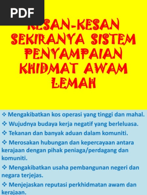 Kesan Kesan Sekiranya Sistem Penyampaian Khidmat Awam Lemah