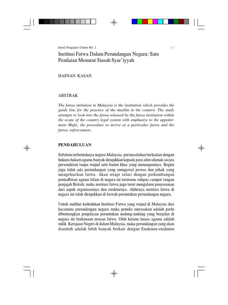 Institusi Fatwa Dalam Perundangan Negara Satu Penilaian Menurut Siasah Syar Iyyah