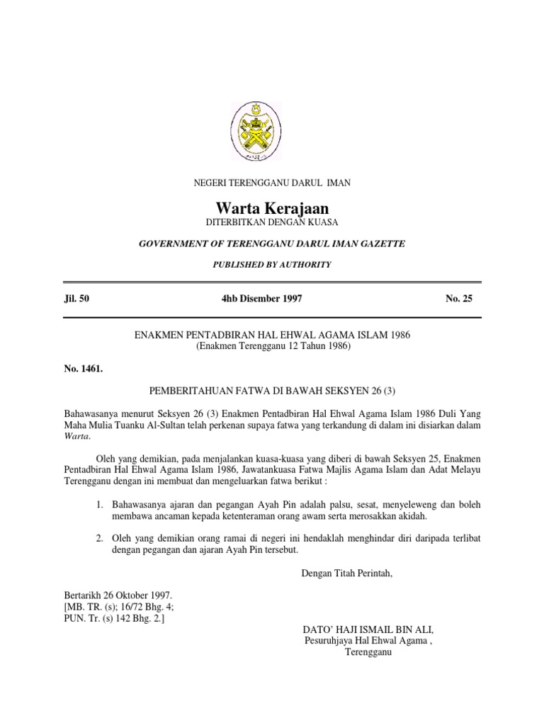 Http E Smaf Islam Gov My E Smaf Assets Files Old Site Enakmen Pentadbiran Hal Ehwal Agama Islam Terengganu 2001 Pdf