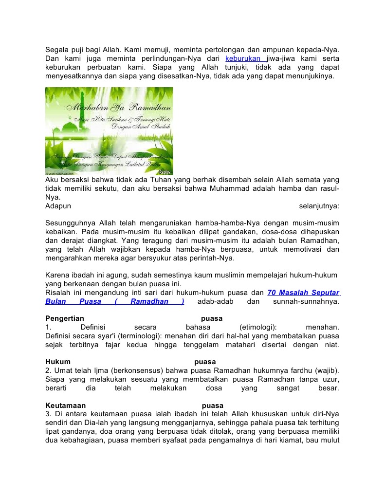 Seputar Hukum Puasa Ramadhan Muslim Or Id