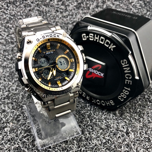 Cas G Shock Jam Tangan Lelaki Silver Gold Stainless Steel Free Box Gshock Shopee Singapore