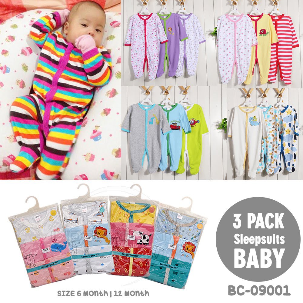 3pcs Baju Bayi Jumsuit Carter Jumper Bayi Kaki Tutup 3in1 100 Cotton 3in1 Sleepsuit Baju