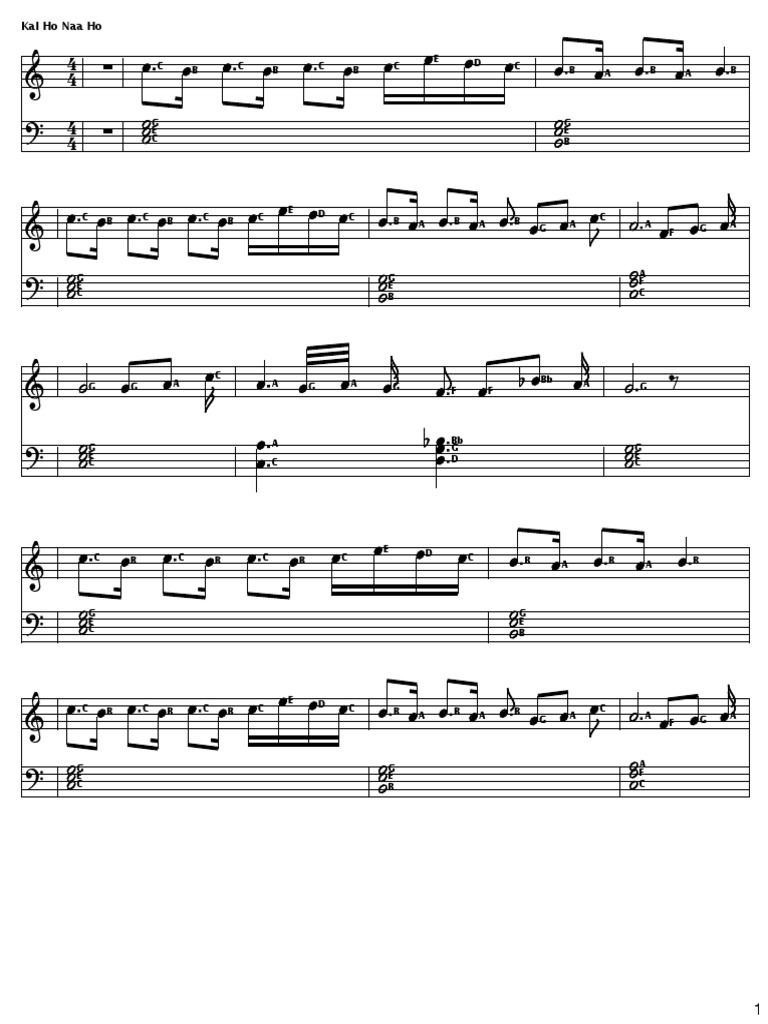 Kal Ho Naa Ho Sheet Music For Piano Solo Musescore Com