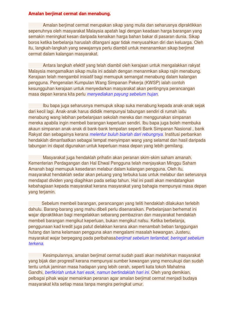 Cara Memupuk Amalan Berjimat Cermat Karangan Spm