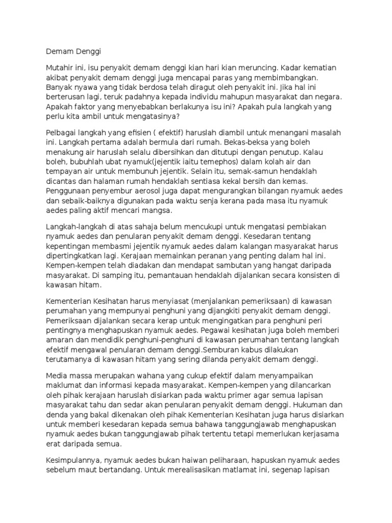 Contoh Contoh Karangan Sekolah Menengah Contoh Karangan Langkah Langkah Untuk Mencegah Deman Denggi