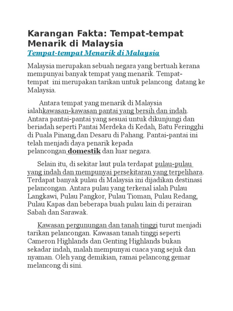 Karangan Fakta Tempat Tempat Menarik Di Malaysia