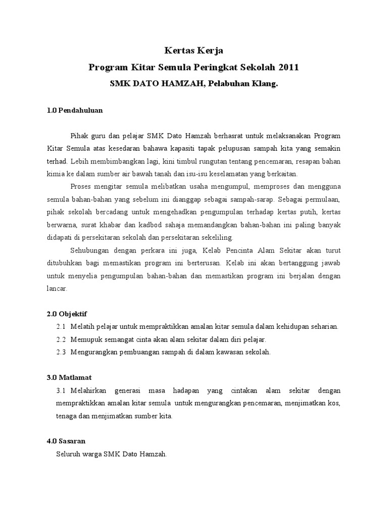 Kertas Kerja Program Kitar Semula Docx
