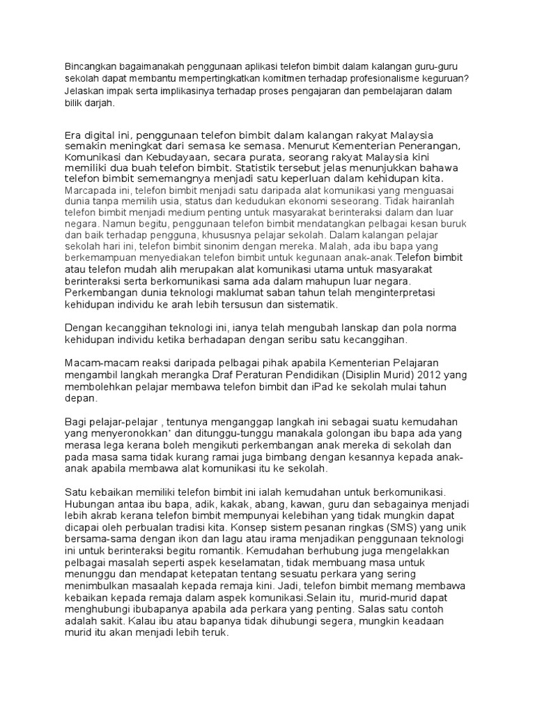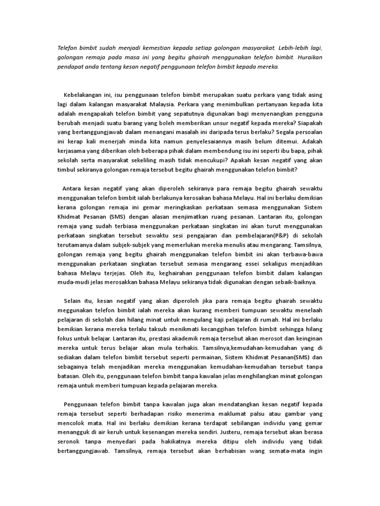 Karangan Kepentingan Dan Impak Buruk Telefon Bimbit Kepada Remaja