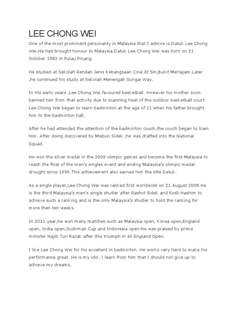 Karangan Biografi Tentang Datuk Lee Chong Wei