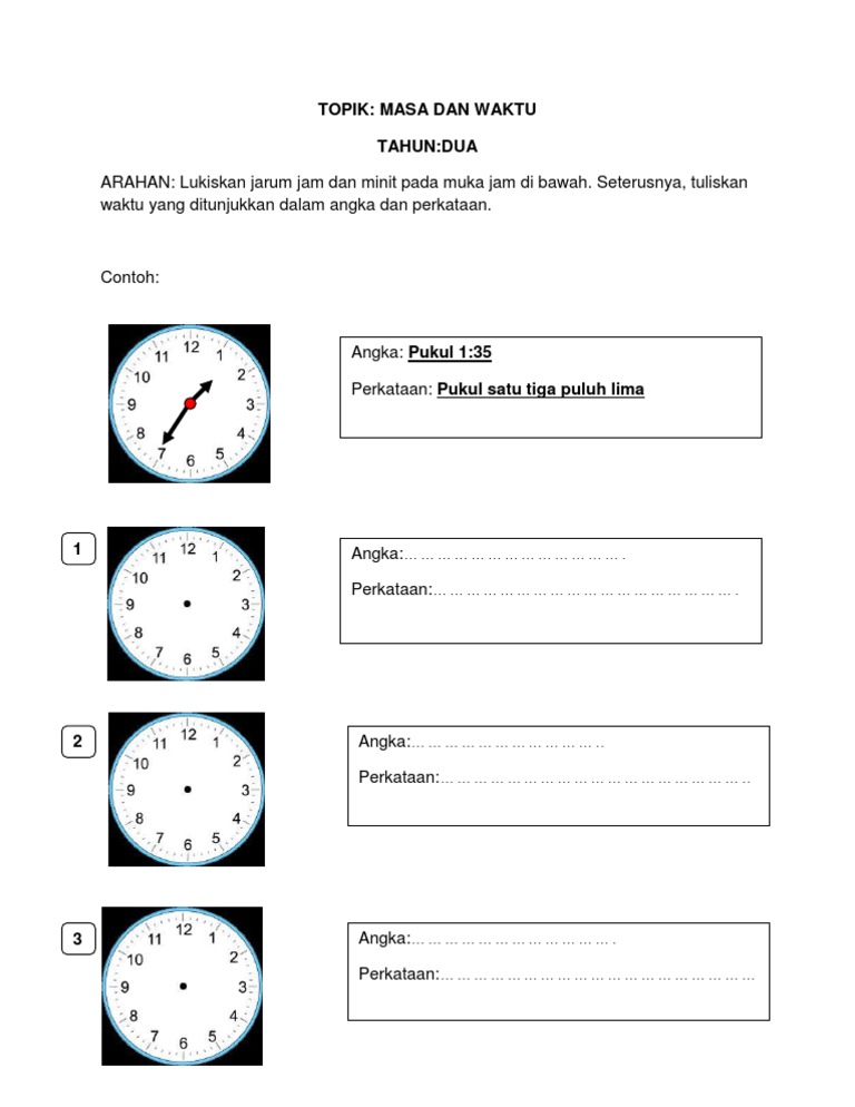 Soalan Matematik Tahun 1 Masa Dan Waktu J Kosong R