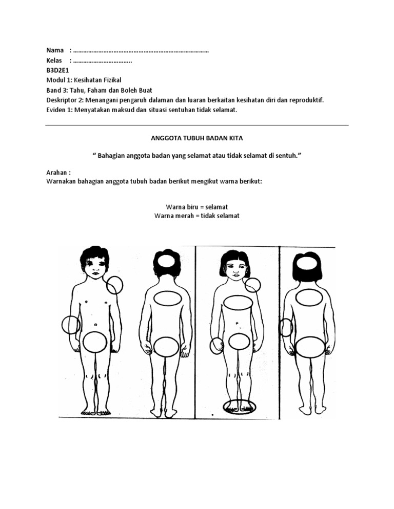 Pendidikan Kesihatan Tahun Latihan Sentuhan Selamat Dan Tidak Selamat