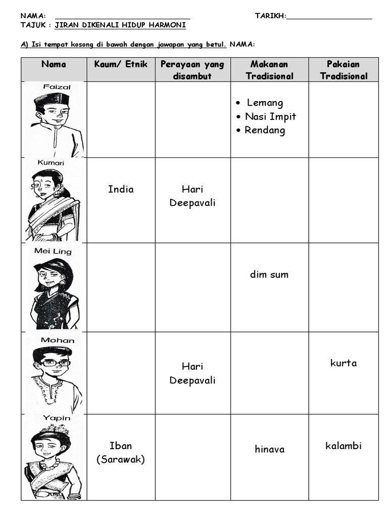 Lembaran Kerja Mengenal Kaum Di Malaysia