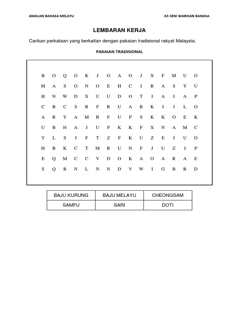 Lembaran Kerja Kedua Pakaian Tradisional Di Malaysia