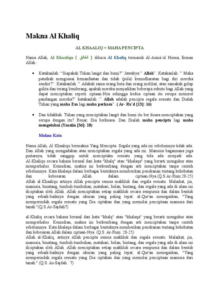 Maksud Nama Allah Swt Al Khalik Dan Al Razaq