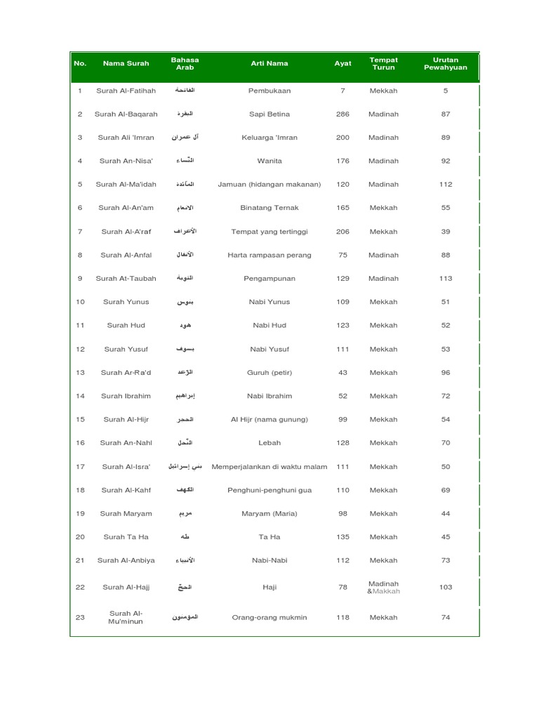 Daftar Nama Surah Alquran Dan Jumlah Ayatnya Pdf