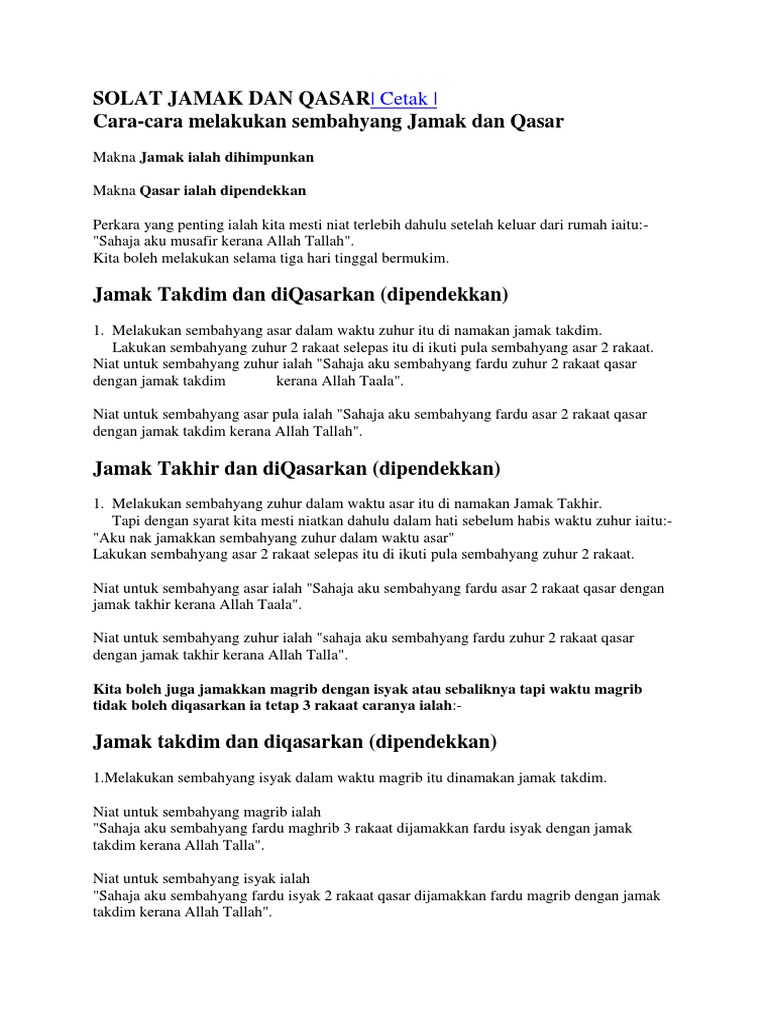 Cara Solat Jamak Dan Qasar Dengan Betul