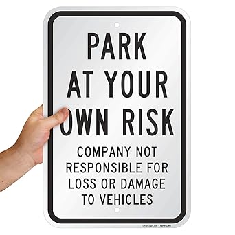 Smartsign Park At Your Own Risk Company Not Responsible Sign 12 X 18 Aluminum Amazon Co Uk Business Industry Science