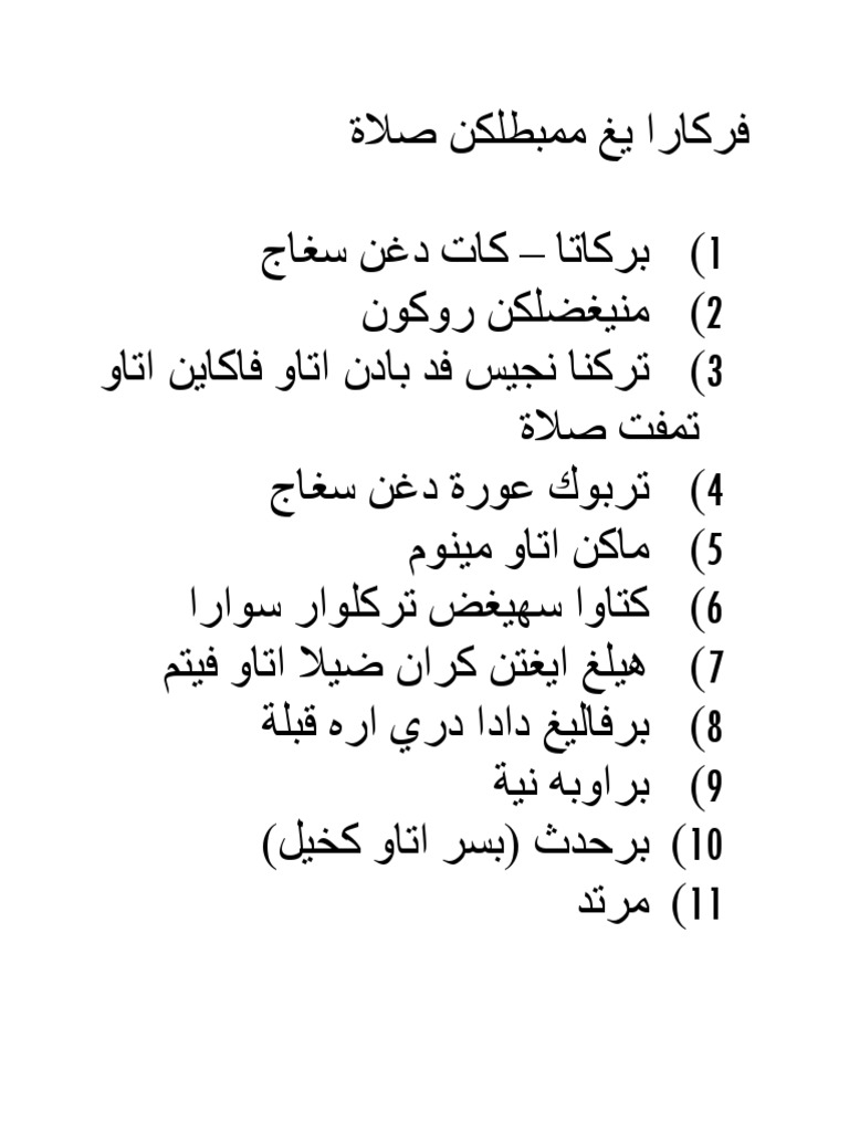 Perkara Yang Membatalkan Solat Dalam Bahasa Jawi