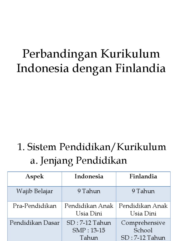 Perbandingan Kurikulum Indonesia Dan Finlandia