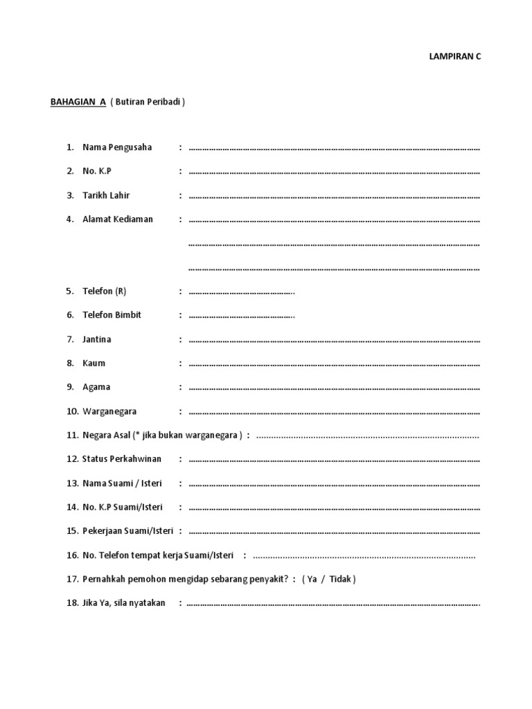 Contoh Borang Permohonan Kerja Syarikat