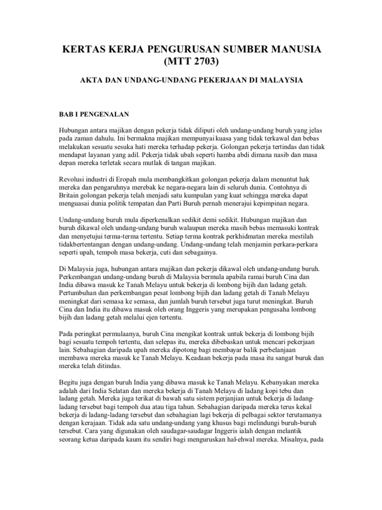 Sumber Manusia Contoh Surat Perjanjian Kerja Antara Majikan Dan Pekerja