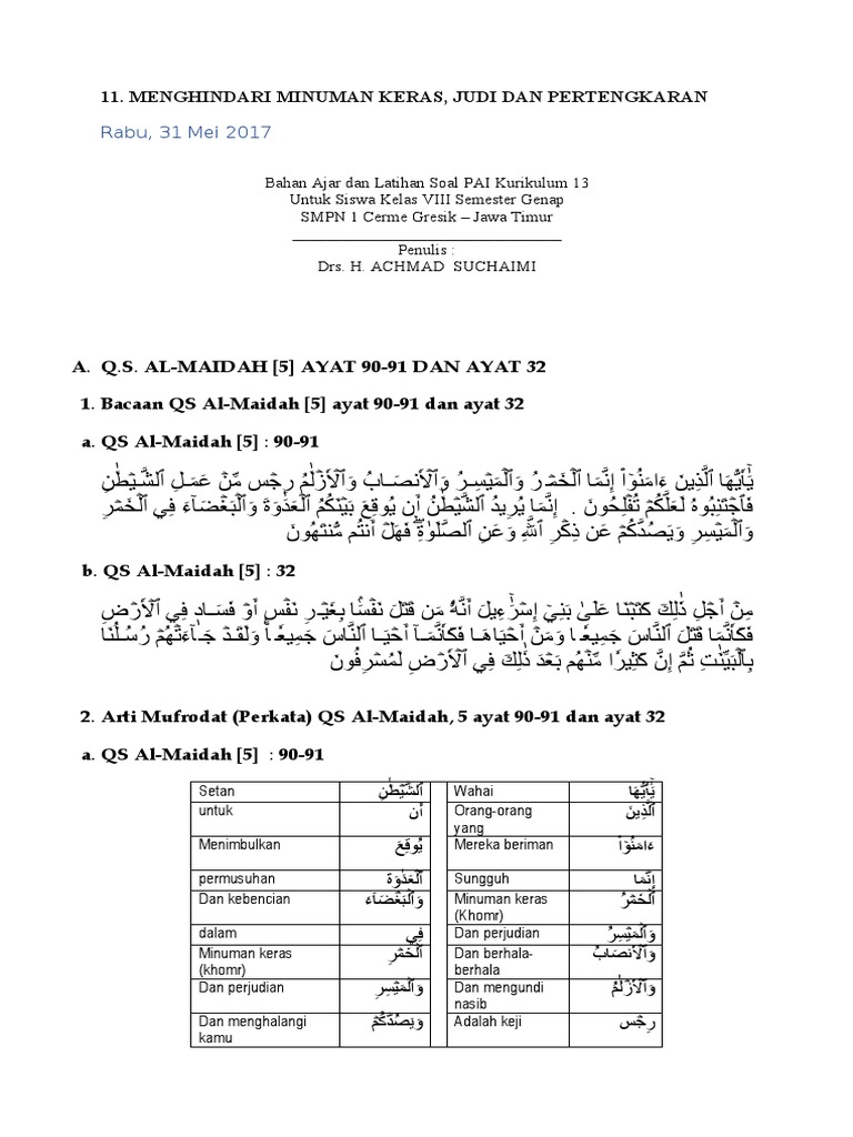 Pdf Ringkasan Materi Pai Smp Kelas 8 Bab Ii Menghindari Minuman Keras Judi Dan Pertengkaran Sumaya Wulandari Academia Edu