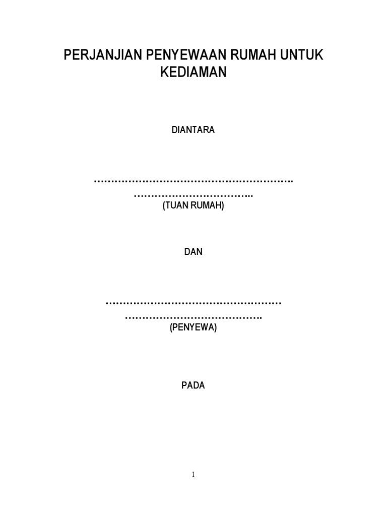 Perjanjian Penyewaan Rumah Untuk Kediaman