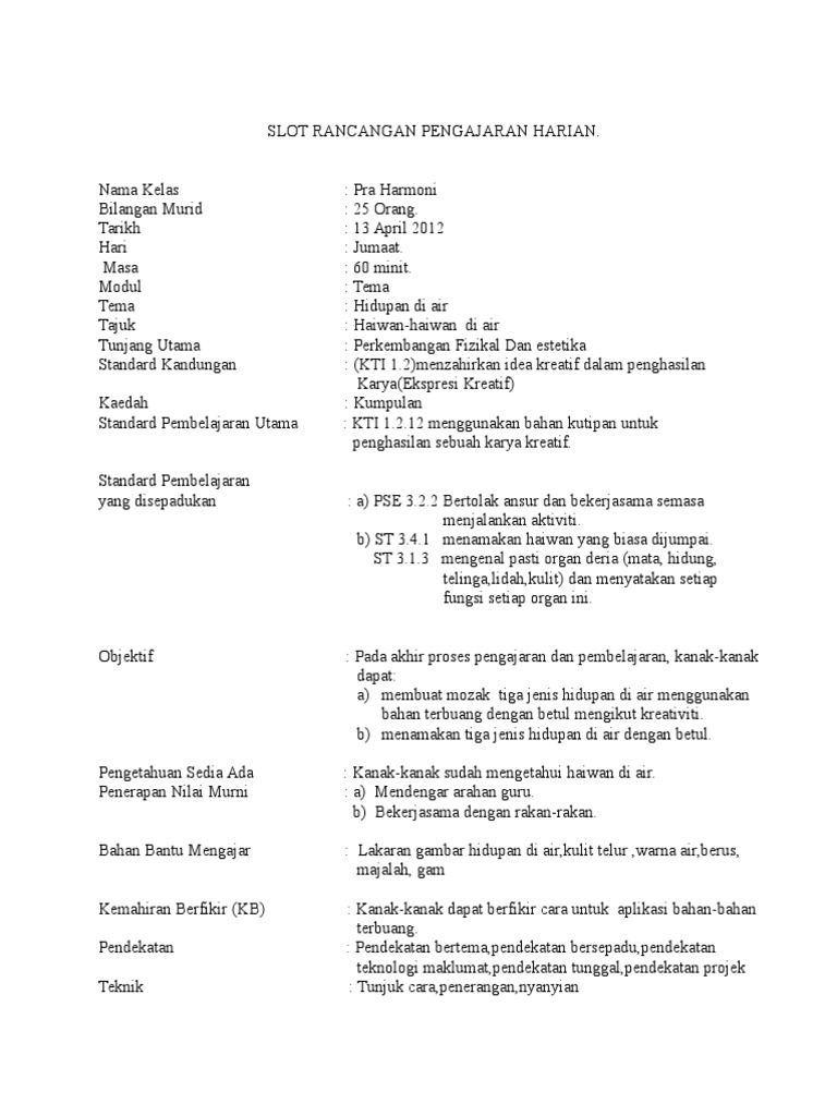 Contoh Rph Pedagogi Bermain