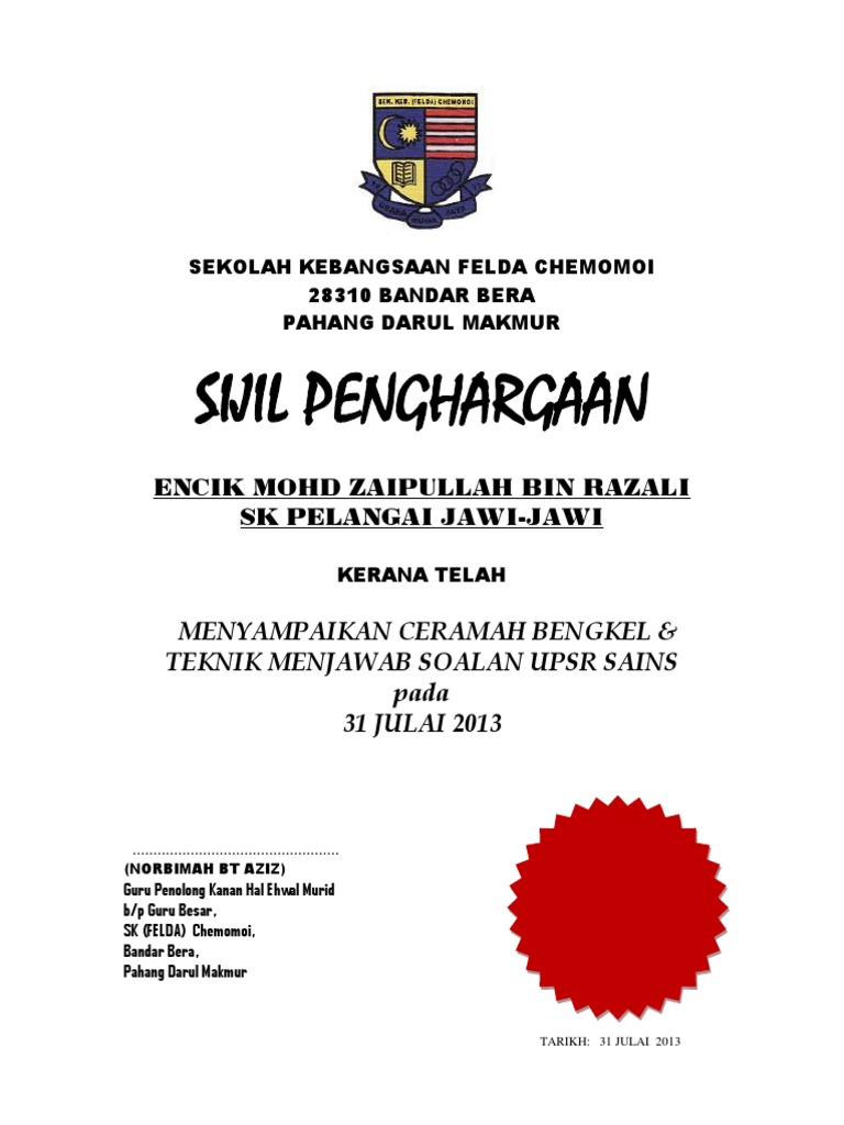 Contoh Sijil Penghargaan Dan Boleh Diedit