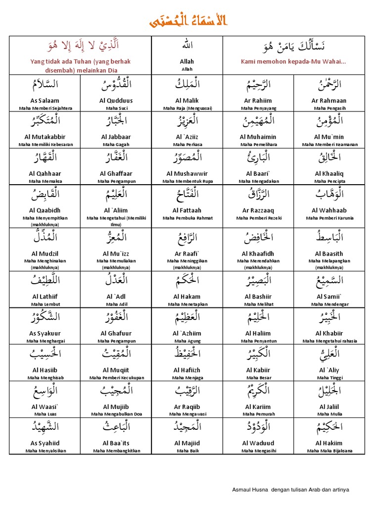 Tabel Asmaul Husna Dan Artinya Pdf Download My First Jugem