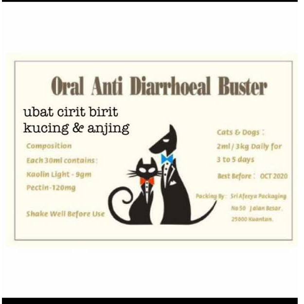 Oral Anti Diarrhoeal Buster Ubat Cirit Birit Kucing Anjing 30ml Shopee Singapore