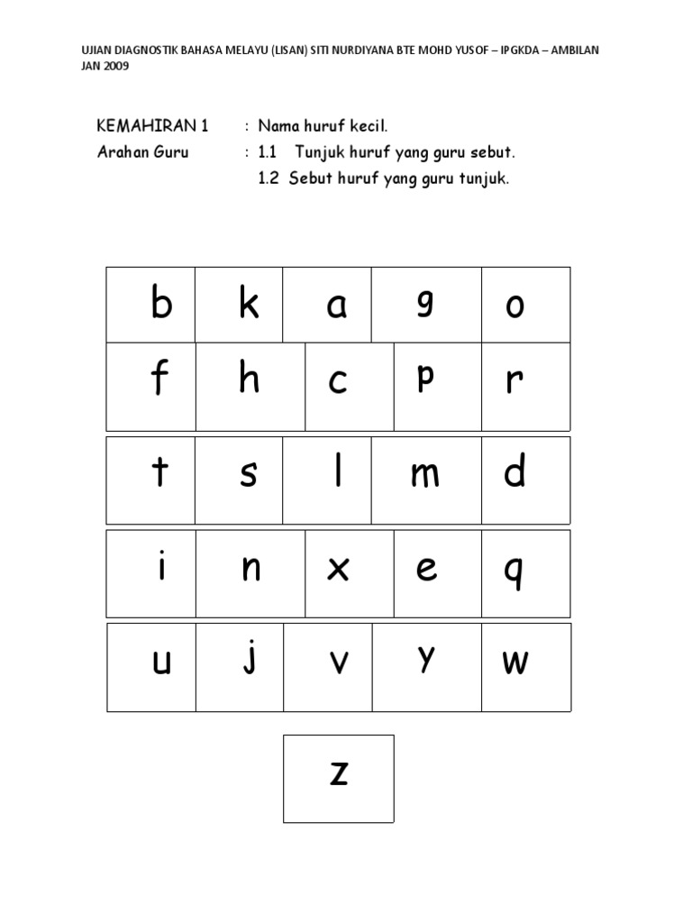 Ujian Diagnostik Tahun 1 Bahasa Melayu