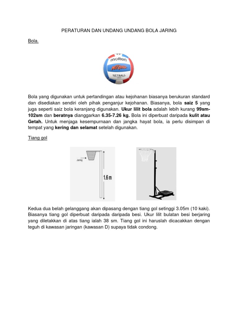 Ukuran Gelanggang Bola Jaring Soalan Bh